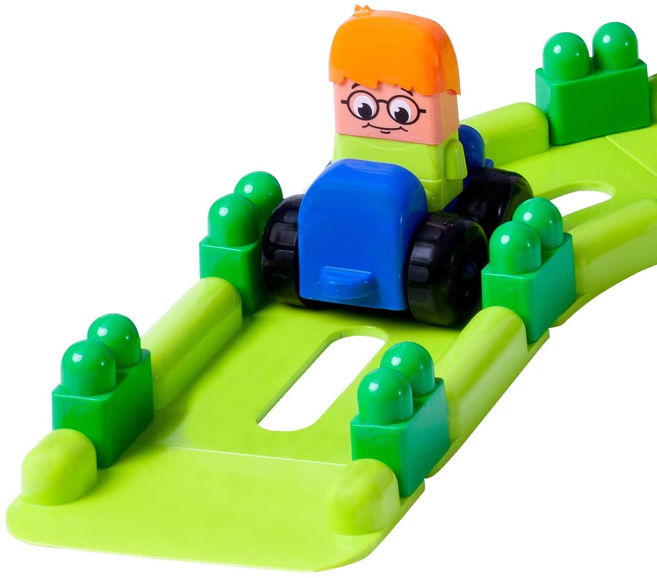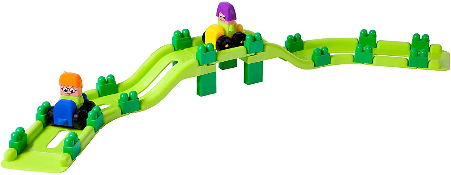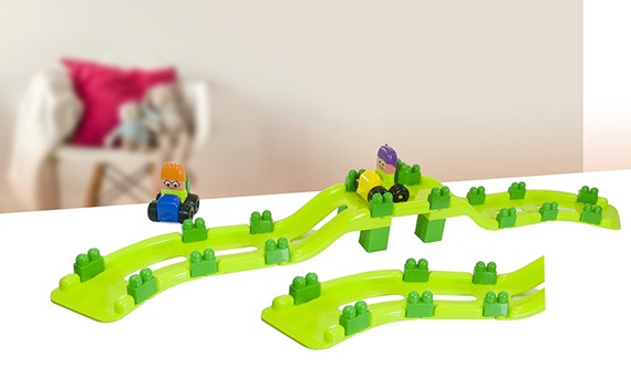 Λάβε θέση, ετοιμάσου, πήδα! Πολλοί τρόποι συναρμολόγησης δρόμων ταχύτητας. Με πίστες, ράμπες, αυτοκίνητα και ατελείωτες περιπέτειες. Εξασκεί τη χειρωνακτική ευκινησία και την αναγνώριση χρωμάτων, με τα μεγάλα κομμάτια και την ποικιλία χρωμάτων και αποχρώσεων.