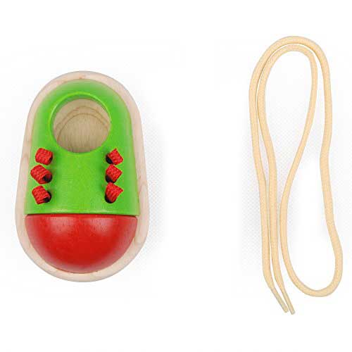 A child’s first step in learning to tie their little shoe. This toy is based on the Montessori method. Size: 7.0 x 11.0 x 4.0 cm