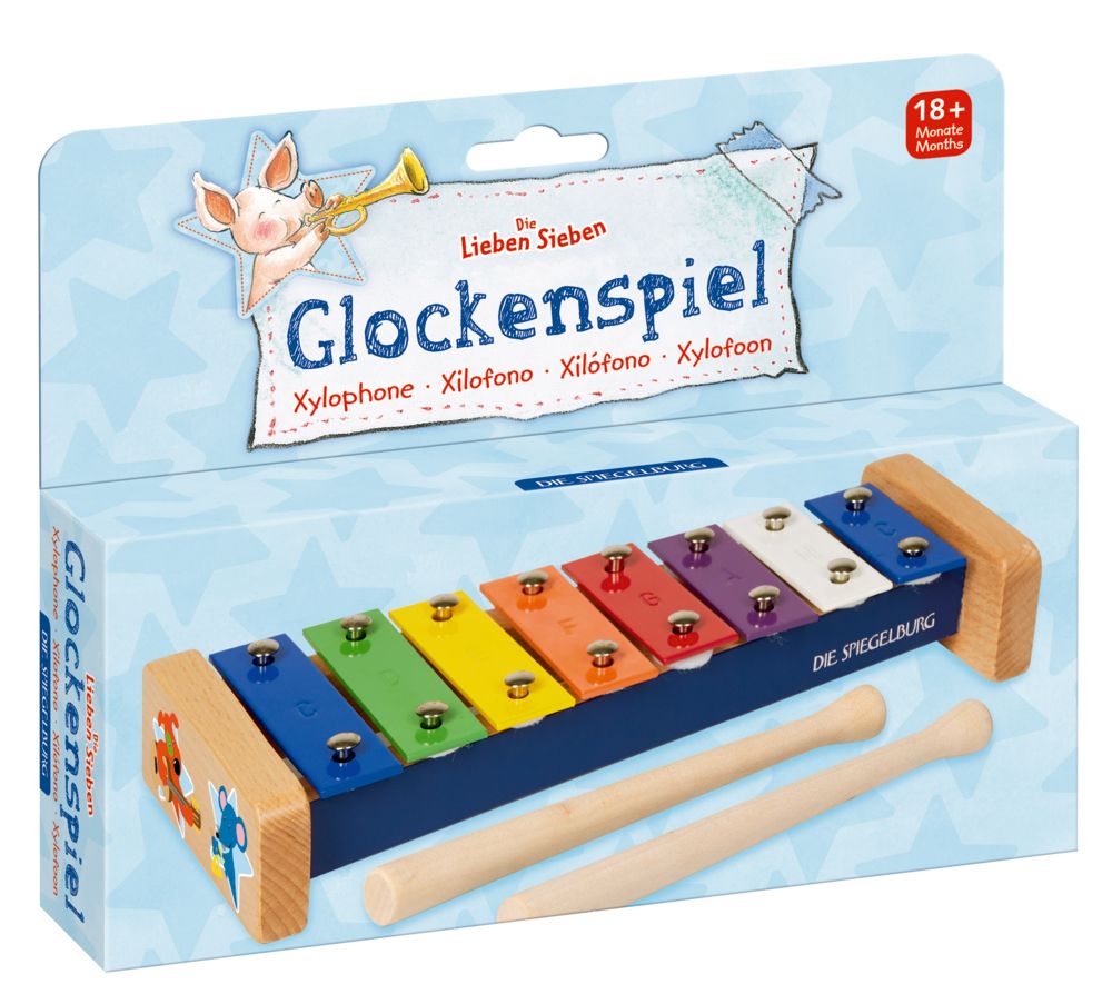 Στο πολύχρωμο ξυλόφωνο από την σειρά ‘ die Lieben Sieben’ τα παιδιά μπορούν να παίξουν τις πρώτες τους μελωδίες ή να συνθέσουν νέες. Υπάρχουν τρεις απλές μελωδίες με έγχρωμες νότες για να παίξετε μαζί. Σε ένα κουτί δώρου. Κατασκευασμένο από ξύλο και μέταλλο.