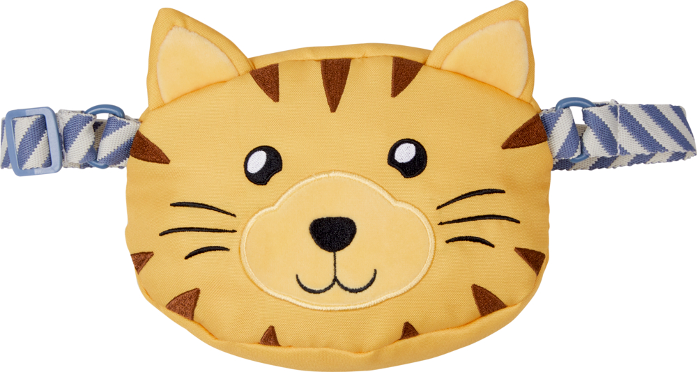 Πρακτική τσάντα με χαρούμενο πρόσωπο με τίγρη. Σε απλό, σκανδιναβικό σχεδιασμό και λεπτό κίτρινο τόνο. Με εφαρμογή, φερμουάρ και ρυθμιζόμενο ιμάντα.